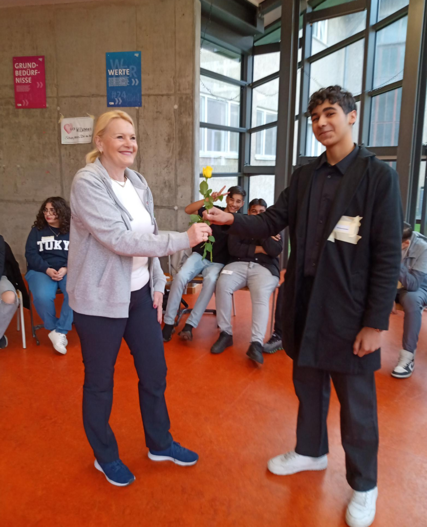 „Die Jugendlichen werden die Ideen und Erlebnisse in die nächste Sitzung der Gesamtschülervertretung einbringen.“ erklärt Frau Kracker, Sozialarbeiterin an der Albrecht-Haushofer-Schule. Gemeinsam mit ihrer Kollegin Frau Boldt hat sie ausgewählten Klassensprechern die Teilnahme an dem Berliner Kongress ermöglicht. „Und dann wird es hoffentlich an die Umsetzung gehen.“ Das sei besonders wichtig, so Frau Kracker, damit die Schüler spüren, dass sich gesellschaftliches Engagement lohne. Demokratisches Handeln müsse früh geübt werden, ergänzt die Sozialarbeiterin, „darauf legen wir in der Albrecht-Haushofer-Schule ganz besonders großen Wert.“